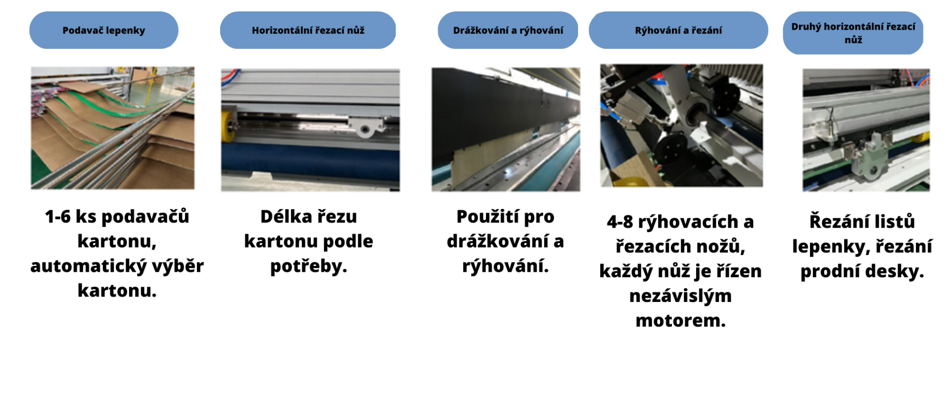 - 1 - 6 jednotek pro padávání lepenky (základní jednu jednotku je možné doplnit až na počet 6)